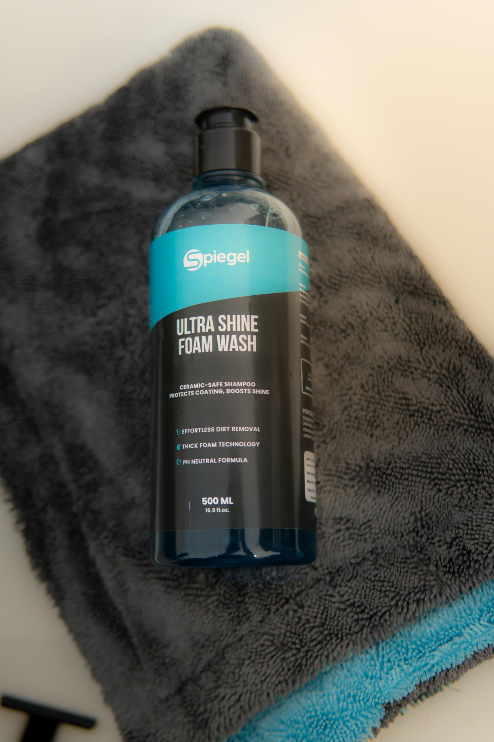 Spiegel Ultra Shine Car Shampoo 1L + 250 GSM Microfiber Cloth – High Foam pH-Balanced Car Wash Liquid – Streak-Free Shine – Safe on Paint, Ceramic, Chrome & Glass